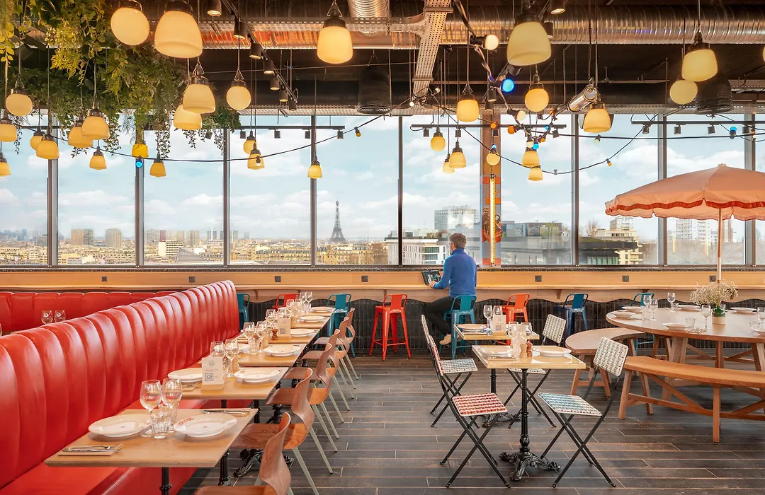 Le restaurant sur place, French Kiss, propose une sélection de plats français et de boissons tout au long de la journée, tout en offrant une vue sur la Tour Eiffel depuis la toiture. Un petit-déjeuner buffet est servi chaque matin pour bien commencer la journée.