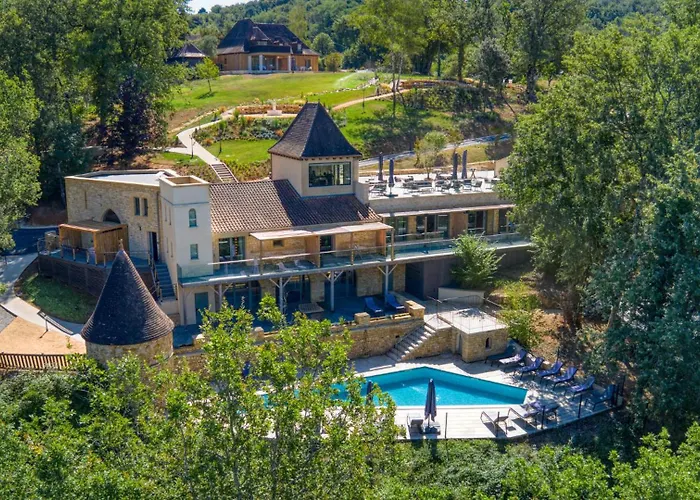 La Perle de Domme est un hôtel 4 étoiles qui propose des appartements de luxe et des installations haut de gamme comme une piscine chauffée et un bar à vin sur le toit. Ce domaine combine des appartements élégants et un service de type hôtel, offrant une expérience unique de tranquillité au cœur de la région du Périgord Noir.