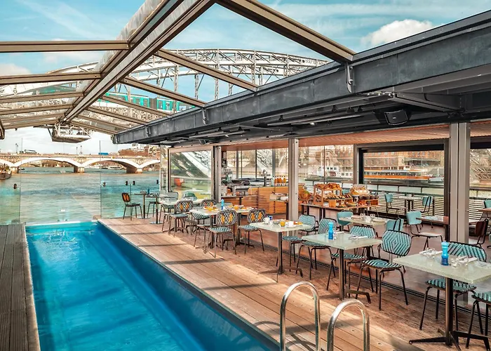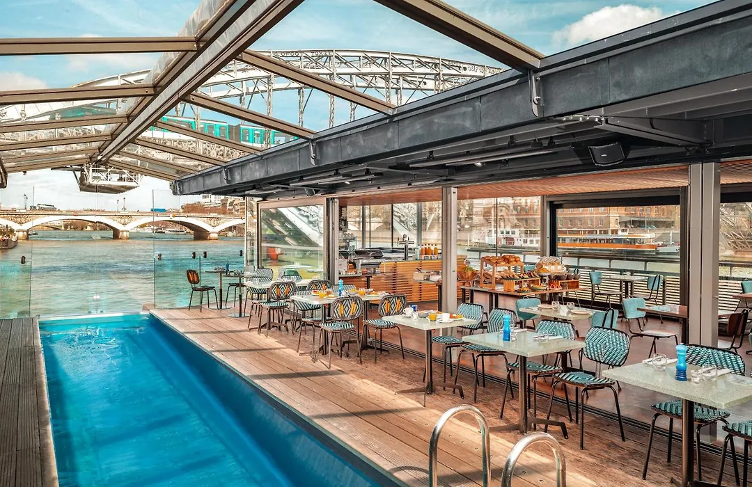 Hotel Off Paris Seine, un hôtel 4 étoiles noté 8.6/10 sur Booking.com, est un hôtel flottant offrant des vues uniques sur la Seine. Ses installations comprennent une piscine extérieure et un bar-restaurant servant des cocktails et des plats régionaux.