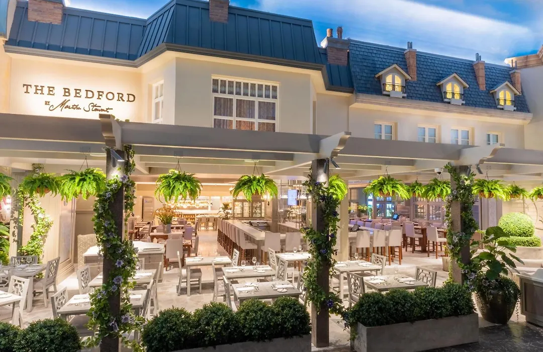 Les options de restauration incluent le célèbre Gordon Ramsay Steak et le Mon Ami Gabi, un bistro français avec service en plein air. Le Village Buffet et JJ's Boulangerie complètent l'offre gastronomique de l'établissement.
