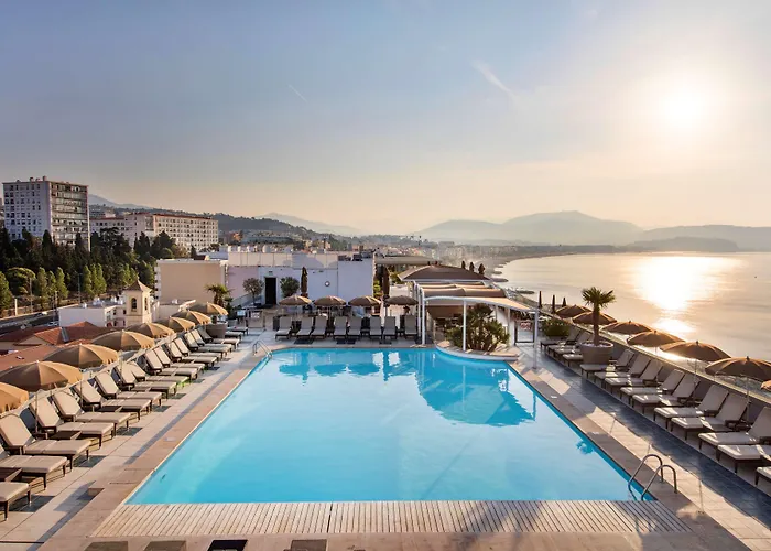 Radisson Blu Hotel Nice, un hôtel 4 étoiles avec une note de 7.7/10 sur Booking.com, dispose d'une piscine sur le toit et d'une plage privée offrant des vues panoramiques sur la Méditerranée. Ce nice hotel propose des installations de spa, des restaurants et des services adaptés aux familles et aux animaux de compagnie.