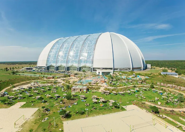 Les hébergements à Tropical Islands comprennent une variété de chambres allant des Comfort Rooms aux Premium Lodges, situés au sein du Dome. Chaque chambre est équipée de la climatisation, d'une connexion Wi-Fi gratuite et d'une télévision à écran plat. Les Lodges sont regroupés par thème, offrant une expérience unique aux visiteurs.