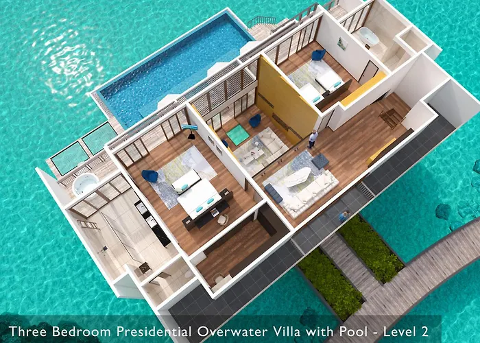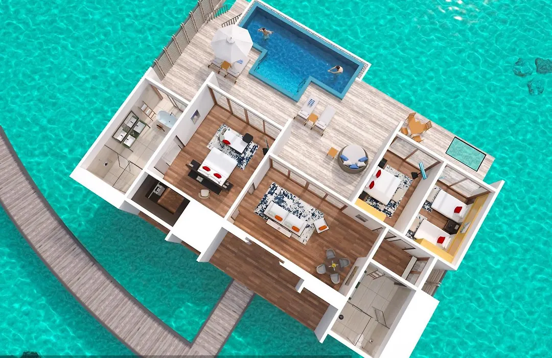Radisson Blu Resort Maldives With 50 Percent Off On Sea Plane Round Trip 03 Nights & Above offre un cadre isolé avec des villas de plage et sur pilotis, toutes dotées de piscines privées et de vues imprenables. Ce complexe hôtelier 5 étoiles propose également un accès direct à la plage et diverses installations de loisirs, notamment des sports nautiques et un spa de luxe.